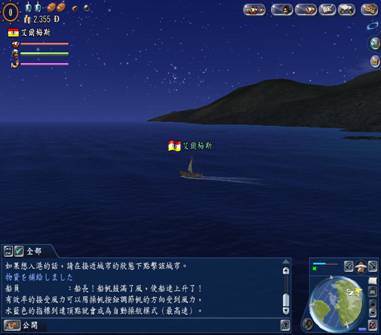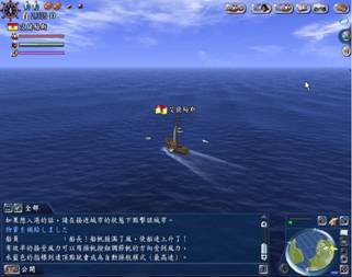 操纵船支时除了以滑鼠点击二下海面引导前进方向之外,再来重要的大概就是怎么操纵罗盘了。