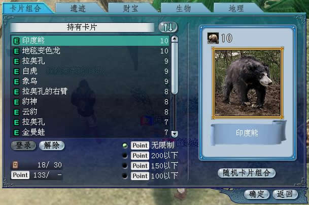 Point就是 卡片的总点数 比如一张印度熊是10点 那么 10张印度熊就100点了(Ps 废话) 左下角也有个point 那个是当前的总点数 右下角那个是选择论战的总点数( 如果想玩 combo形的 那么就玩100-150 ,200是多排+combo 无限制 就是看发现物的多少了)