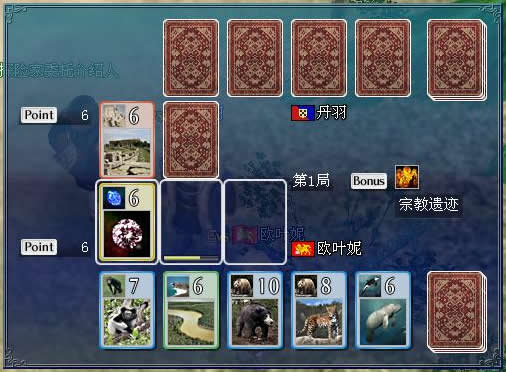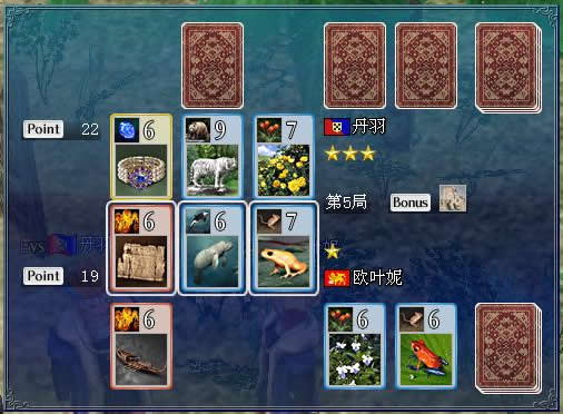 【规则】玩家一次出3张牌(第1张从回合6牌组内强制最左边打出,2、3张玩家自行从回合牌组打出),最後比双方总点数大小,7战4胜或最後胜场最高者为赢。
