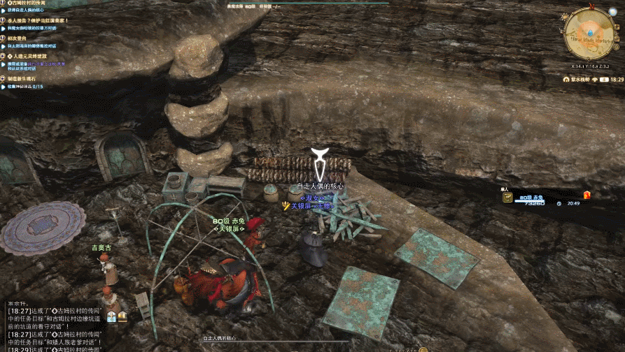 接下来前往废墟平台上方找到并拾取“自走人偶的核心”,然后返回提交给NPC阿诺古。
