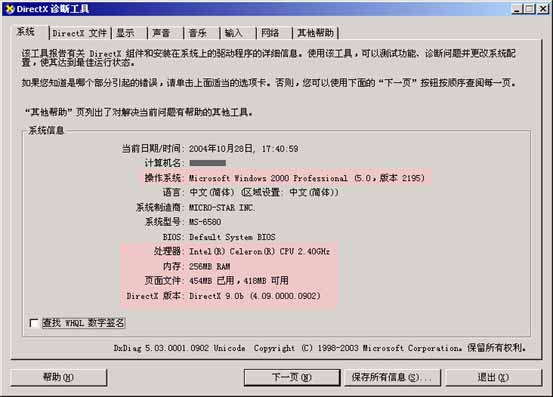 游戏的运行环境必须要安装DirectX 7.0或者更高版本,你可以通过如下操作来知道自己电脑的DirectX版本: