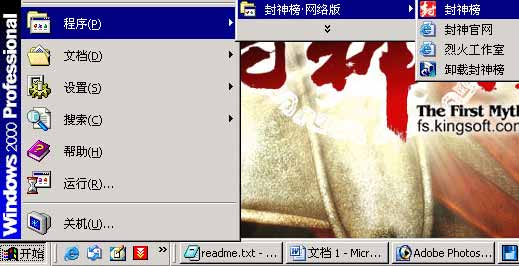 b. 也可以通过“开始”菜单中,“程序”里的封神榜的快捷方式来运行游戏