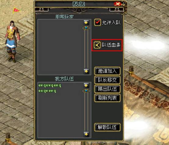 玩家可以通过队伍界面的“队伍血条”按钮来开关队友的血条。
