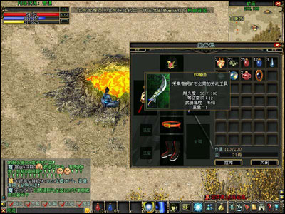 满足以上两个条件后,就可以去青铜山了。找到一个矿坑,调整左键技能为“盘古开天”,点击矿坑,人物就会自动进入挖矿状态了,挖到物品后会自动进入到你的装备栏里面。这时候你就可以另外开一个客户端新玩一个号了。