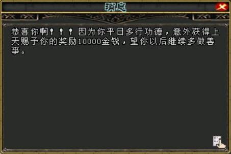 在西岐和朝歌城的应签商那里大家可以1000金钱/支的价格购买应签,玩家右键点击使用,就有一定的运气得到最高100000金钱的奖励。此外还有20000、10000、血瓶、内力瓶等奖励形式。