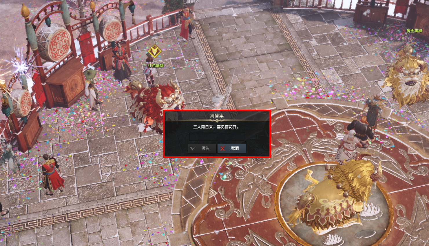 除了发红包的有趣玩法外,冒险家们可以在系统角色【红色舞狮】处接取【猜谜达人】系列任务,在完成轻松简单的灯谜后即可完成任务获得100个芙蕾雅的小星星奖励。