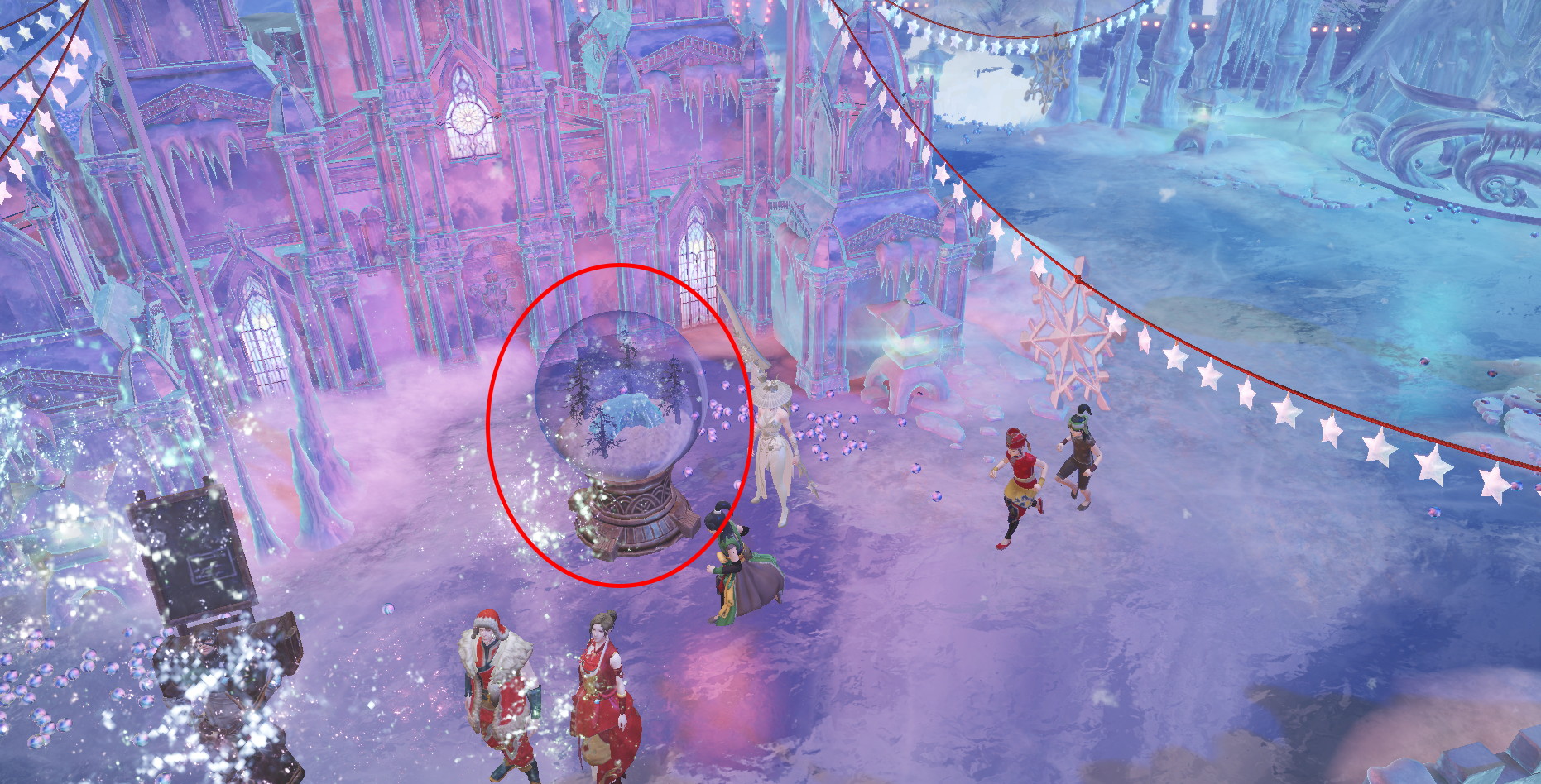 在召集足够人数后即可进入冰封城,在其中,冒险家们将变身摩可豆收集冰晶并摧毁雪花冰或者消灭寒冰龙即可获得分数,还要千万注意不要踩到坏掉的寒冰地板,分数更高的冒险家将获得更多的奖励。
