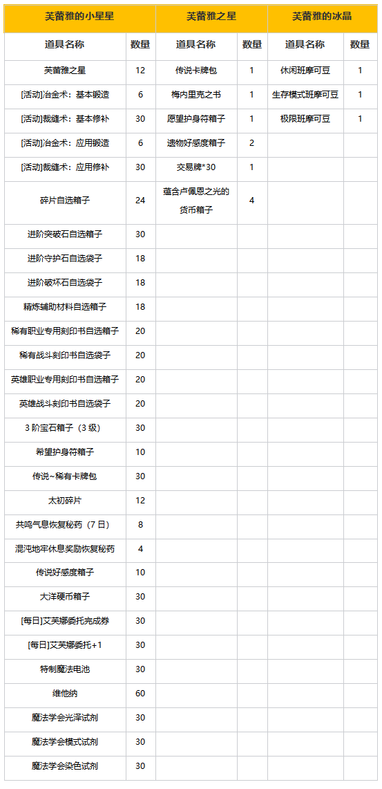 完成玩法后可以获得【芙蕾雅的小星星】和【芙蕾雅的冰晶】,使用这两种特殊货币冒险家们可以前往游戏内活动中心兑换丰厚的奖励,每支远征队每日可进入1次,入场次数每天上午6点初始化。