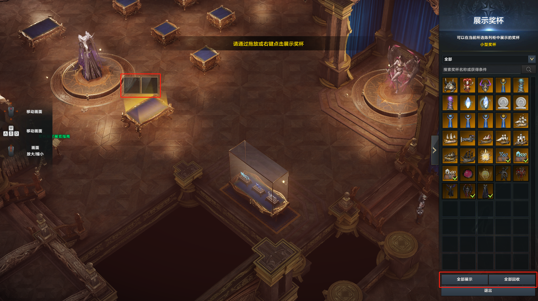 ●冒险家可以点击陈列柜进行配置,也可以选择右下角【全部展示】将目前所拥有的奖杯都展示出来