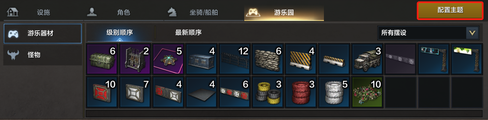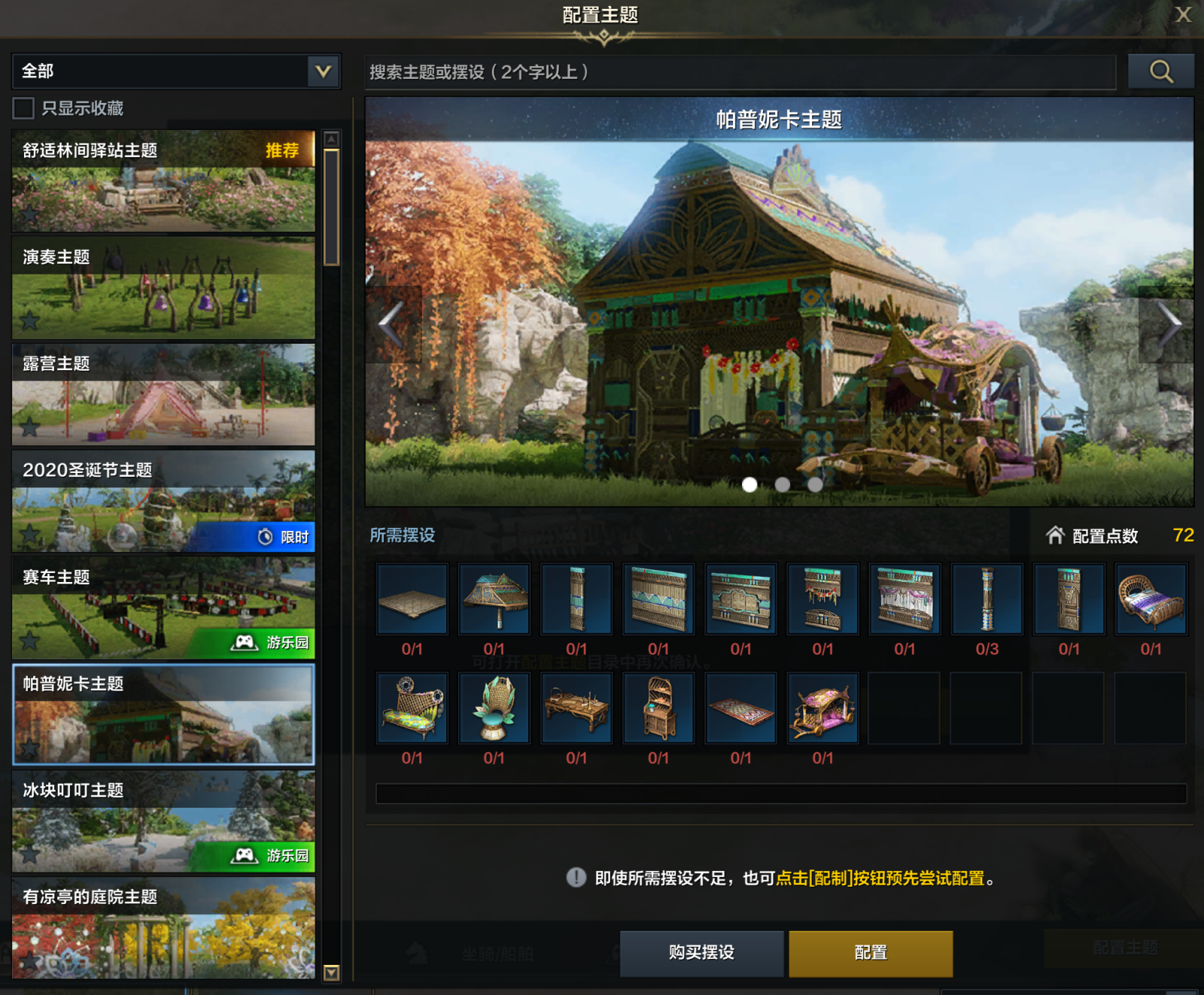 ●在配置主题中提供各类场景预设,如果冒险家拥有场景中所需的所有摆设,则可以快速应用该预设。