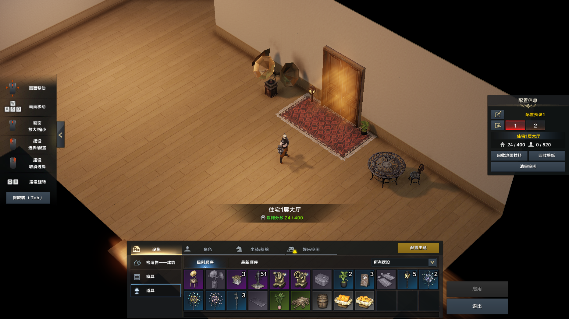 ●在住宅内冒险家可以自由摆放摆设。