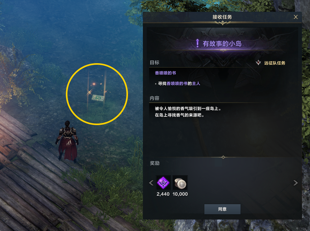 在冒险家进入摩可豆岛后,岛上空无一人,没有传说中可爱的摩可豆也没有邪恶的女巫,面前只有一本香喷喷的故事书,冒险家随着书上的气息寻到不远处的篝火旁。