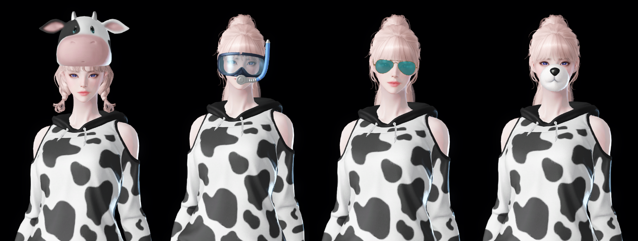 宠物牧场也有全新外观可以使用饼干兑换!奶牛花纹,慵懒休闲的【库奇兜帽】上装和纯黑简约,时尚百搭的【乔奇兜帽】上装,两件外观均可染色,染色爱好者们又可以开始创作啦!