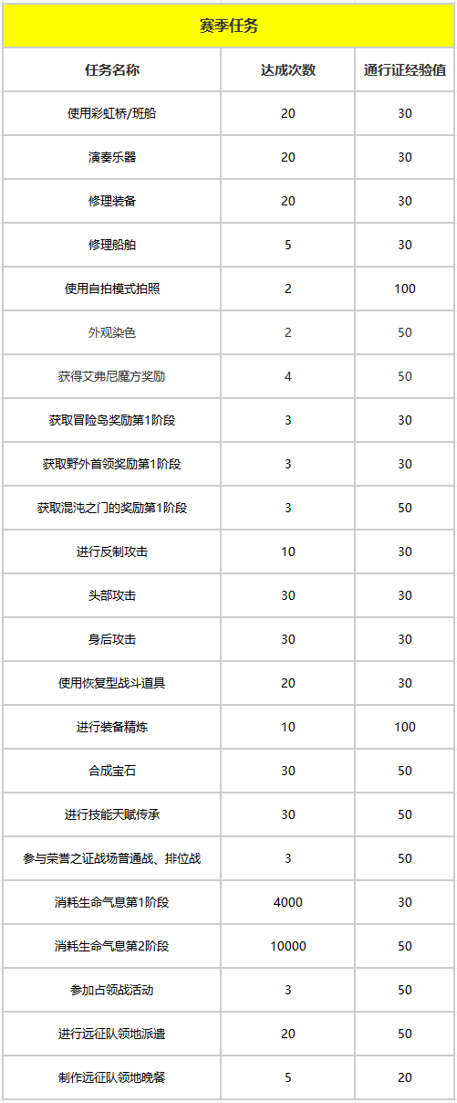 完整的普通任务和赛季任务列表,可查阅本文底部。