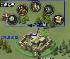 通过菜单您可以完成各种对城堡的操作,例如:查看城堡状态,建立部队,派遣军队等等。
