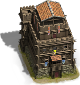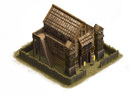 增加木材、石料和铁锭等资源储存上限的建筑。十四世纪的仓库多由松木或石砖建成,并在内部涂抹防火泥浆,由领主亲自任命的司库长专门管理。前置建筑:政务厅2级。 | |