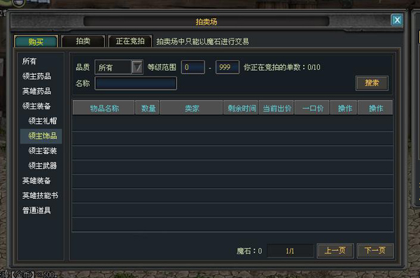 拍卖界面的左边那一页就是购买界面啦,看!相当华丽相当精美吧!充满了魔石的香味~我已经陶醉了~