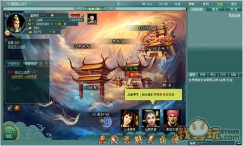 B.进入游戏 选好角色后就可以进入游戏了,进入游戏后,会看到各自种族的洞府界面,并会主动弹出公告和任务提示,提醒玩家的下一步操作。