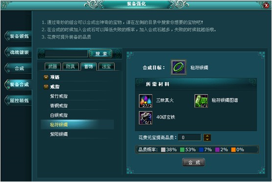 4)、装备合成:装备打造,特殊装备合成在这完成。