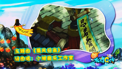 《新水浒Q传》主题曲“乘风归来”,创新结合了水浒风靡歌曲“临安初雨”及“超梦幻”两首不同曲风的旋律,以轻松、愉悦、梦幻、温暖的画面感编织出一幅动人的水浒画面,演奏出一个绚丽多彩的全新水浒世界。108种萌变化之后的《新水浒Q传》,在清新放送的主题曲MV中被一一呈现,向水粉们展示出一段奇幻探险的全新旅途。