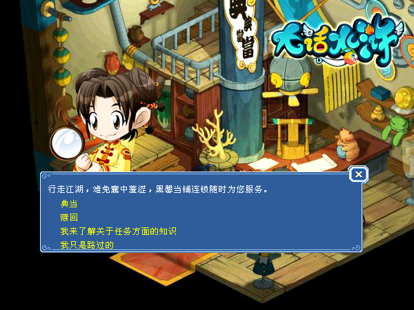 NPC:行走江湖,难免囊中羞涩,黑馨当铺连锁随时为您服务。