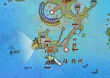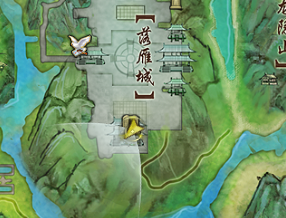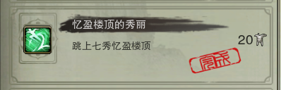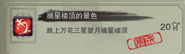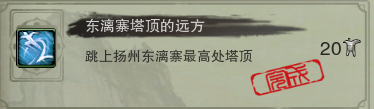 (介于怀旧服的1.0轻功,三星望月直接飞去楼顶的难度较大,建议还是一路乘坐云梯上到顶层后再飞上摘星楼顶。另,地图所示的跳成就的位置是三星望月摘星楼顶的最高处,不是平面地图的位置!)