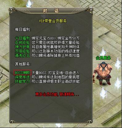 会员地图的Boss不仅可以获得大量的经验和金币,特别重要的是还能刷出极品装备。
