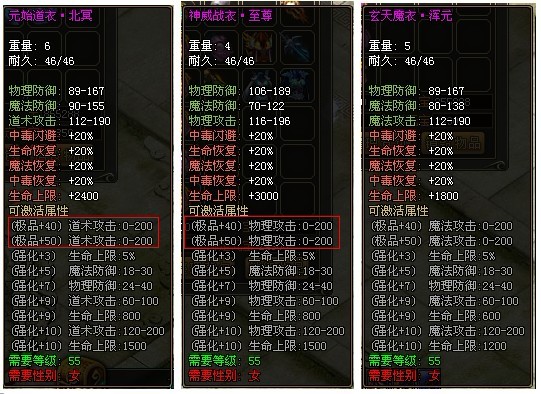 积分衣服极品40可激活属性:增加攻击200