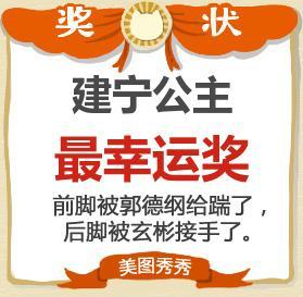 最近大清国举办了有史以来第一届名人堂颁奖典礼,俺有幸拿到了几位得奖人的奖状,来给大家展示一下。1.体贴入微奖 韦小宝小宝的BOSS是小玄子还是他的7个老婆呢。各种XE,各种JQ。2.完美隐藏奖 方怡、韦春花方怡和春花姨共同得到这个奖项。咳咳,可不可以这样理解,方怡甜美清纯、春花姨****。。。3.怀旧奖 曾柔、双儿永远记得,那一夜。。。曾柔和双儿干了些什么。。无限YY中。。。4.***达人奖 小郡主每个人家中都有一个用抽水马桶改造成的变形金刚。。最纯洁的,最单纯的,最心无城府的小郡主,唯一担心的是,韦铜锤韦虎头是叫她娘呢,还是叫她姐姐呢。。5.最幸运奖 建宁公主郭师傅PK玄彬,我觉得前者胜算更大点。郭氏相声还是很给力的。现在什么都是韩国人发明的,那中国人发明了什么呢?你懂的。。。 建宁这是不幸运呢,是不幸运呢,还是不幸运呢。。。6 RP爆棚奖 苏荃在这神马都是浮云的年代,唯独RP不是。。大家谁还想做RP爆棚帝么?不想的话,下次再去超市捏方便面不要专挑一箱捏。。。7.靠谱青年奖 阿珂前车之鉴啊,阿珂肯定没把照片存在坏了的要送去修理的电脑里。。不过,万一曝光的话,大家要谴责谁啊。小宝么。8.爱干净奖 康熙君王、天子,神马都是浮云啊,**也是一个男人啊!!有木有!!后宫的三千佳丽难道找不到一个比得上苍老师的么。9.气质脱俗奖 海大富脸色蜡黄,弓腰曲背,连连咳嗽,说起话来尖声细气,最后还瞎了眼。。果然气质脱俗啊...这是哪门子的气质脱俗啊!!难道后来丐帮帮主都是以庄聚贤为参考的么。。10.全能厨师奖 ***平生不见***,再称英雄也枉然。作为天地会的总舵主,文武双全,上的战场,下的厨房。只可惜平时吃多了皮带,这位全能厨师反清复明的大事也未成功。11.交通文明奖 洪安通不愧是神龙教的教主,就算裸奔也表现着自己一流的涵养。仙福同享,寿与天齐,千秋万代,一统江湖,只是为了把裸奔事业发展下去。最后那么悲催,只是因为,韦小宝的女人你抢不起啊!!!ps:纯属恶搞,凡是涉及到谁谁偶像的事情,大家自行揭过去。。