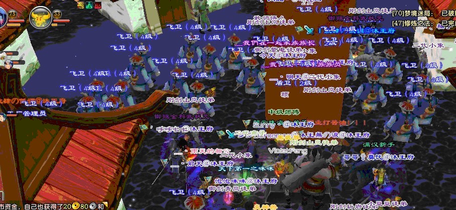 请注意在飞奔中的飞哥们,这就是他们的“攻”劳,皇城用飞哥们抵挡歌城的冲击,呼啦啦的瞬间就躺尸一大片,飞哥们的攻击是多少小记是没法了解(估计基本快赶上秒人了),可是飞哥们的血真是太变态了,50多万啊,就算是玩家到了100级,最牛也是20多万血,还不够一个飞卫的一半。既然有飞哥们守家,皇城的指挥者——放肆の低调,立刻调整策略,改为由城市飞卫守家,全体城员去攻打歌城的攻城大旗。