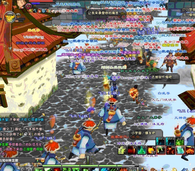 此时,皇城人员遭到两面夹击。前方有歌者城员堵住,后方还有歌者城员用冥界之门使劲拉人。于是皇城人员只和歌城发生小正面冲突,打了一会儿就退回到自己城市里了。不得不说,这次皇城城主,为了保住他们这个散人小城,付出了快要卖身的代价,终于,把他给搞到手了,他是谁?请看下图: