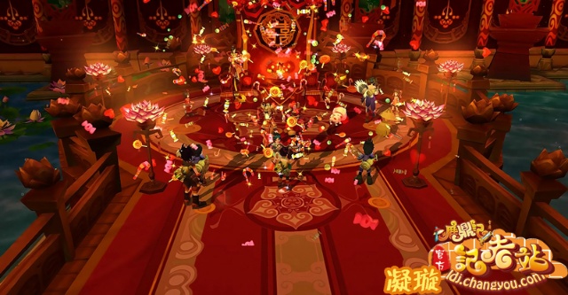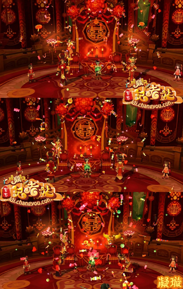 《鹿鼎记》结婚的特色场景“游街”,上书房第一对情侣选择的是急剧传统文化的中式婚礼!新郎骑骏马,新娘含羞带笑座轿中!新郎新娘环绕京师一周,许多玩家都追随其后不睹不快!而惊喜的还有游街洒落的宝箱!追花车拿喜箱,其乐融融!