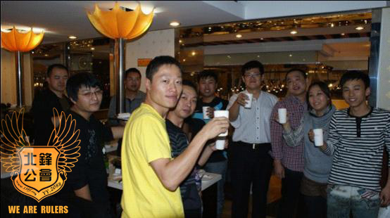 酒过三旬、菜过五味,在晚8点左右War高调驱车到来时人终于到齐,整个聚餐的气氛达到了高潮,这时我们的会长War低调拿出了一件让大家意想不到的东西,一个装在盒子里破碎的奖杯,鹿鼎记内测十大公会北锋公会专属奖杯。由于托运或者是快递的关系,我们的奖杯破碎了,但是我们的心是凝聚在一起的,这枚奖杯,有你的功劳也有我的功劳,感谢搜狐畅游,感谢鹿鼎记,是你们使我们这些朋友从五湖四海走到了一起,是你们使我们的公会迅速发展壮大。会长War低调说:“虽然我们是一家综合性的网游公会,但是这款游戏让整个公会界认识了我们War北锋公会,也把我们的实力展现了在世人的面前,17173十大对我们北锋公会是一种认可和荣誉,我们一定要拿下!”众管理、会员纷纷表态、附和,一下子有一种热血沸腾的感觉,我们就是一家人,我们是主宰-We Are Rulers。新晋团长War悍马也被此情景感染,动情的表示下一次的奖杯一定有一份是他的。