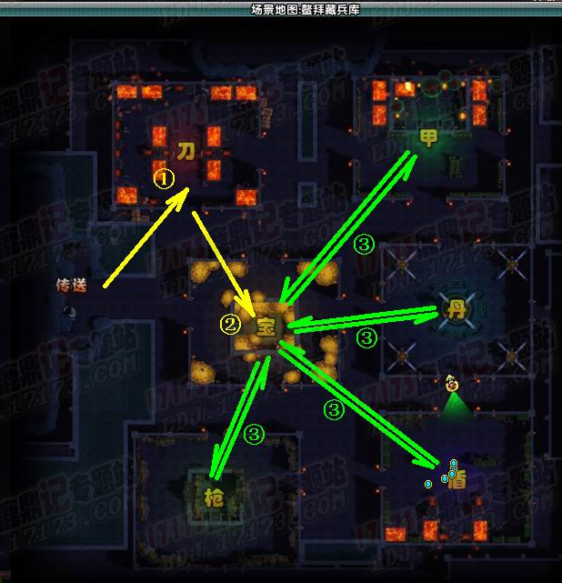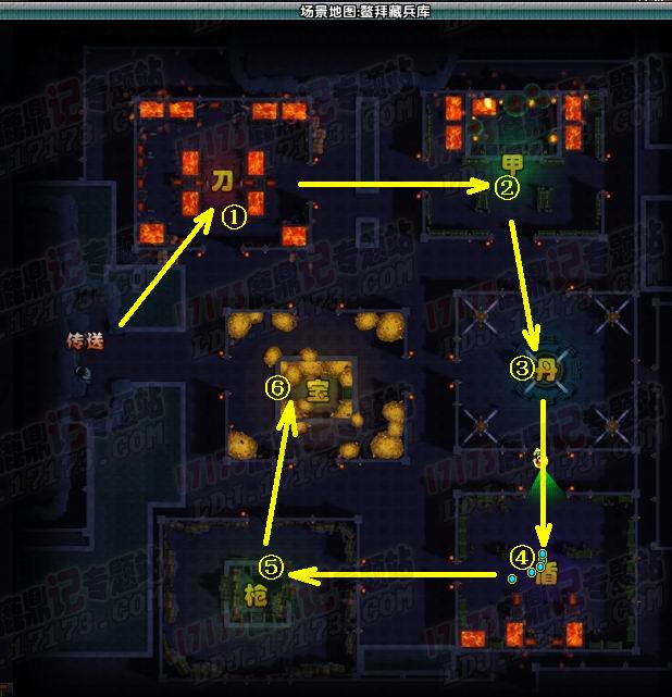 进去后,按照图中顺序一个一个区域打清怪物和BOSS,