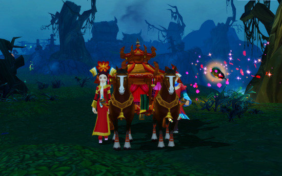 晚上19:00,在黑龙潭出现公主出嫁的车队,可在地图上查看车队的行进路线。车队每隔一段时间会抛洒出公主的嫁妆,玩家可以拾取这些嫁妆。