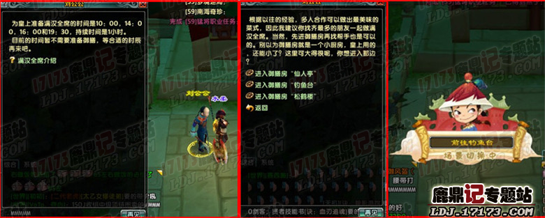 满汉大全席:19:30-20:00,期间每5分钟刷新出御膳房厨子。