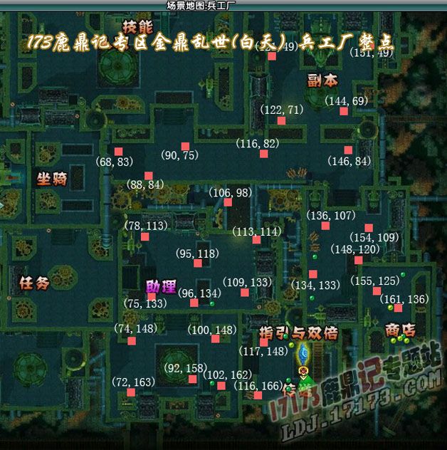 《金顶乱世》兵工厂白天刷新点坐标