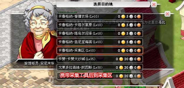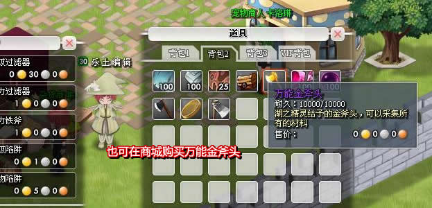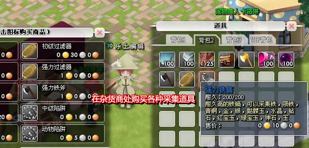 首先购买采集工具,可在杂货商处购买各种采集工具