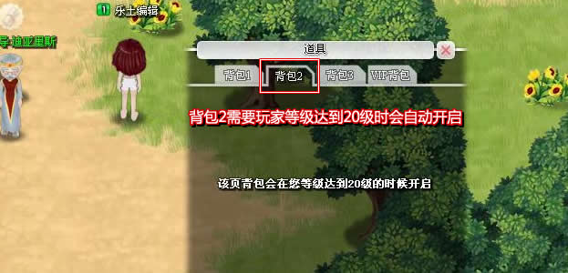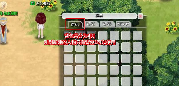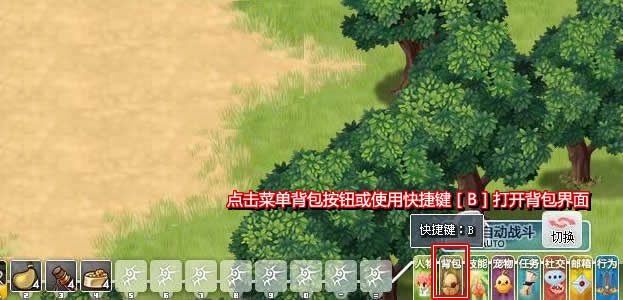 点击菜单背包按钮或使用快捷键[B]呼出背包界面