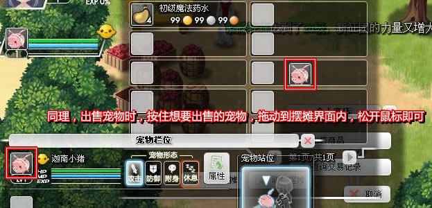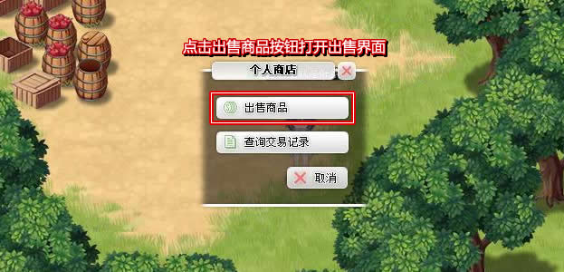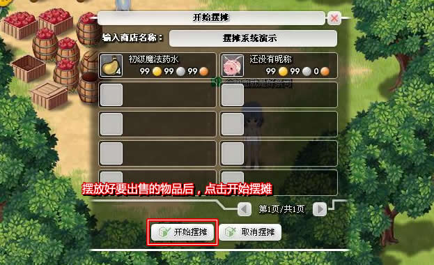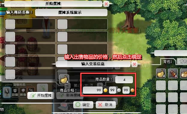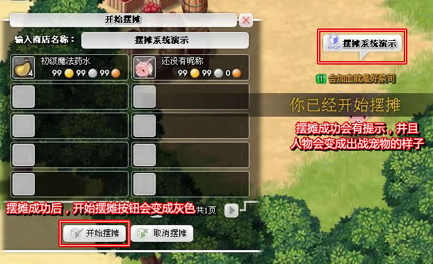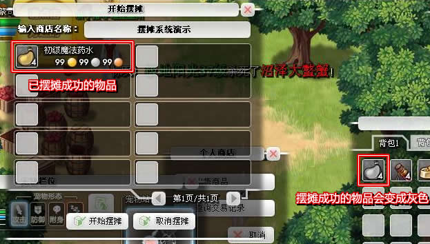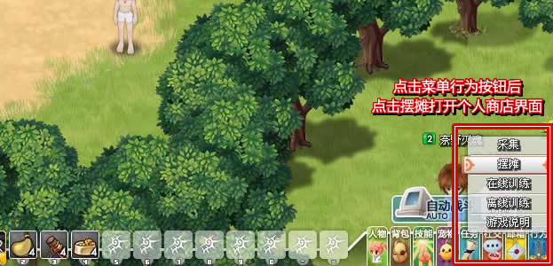 点击行为按钮,弹出菜单后点击里面的摆摊