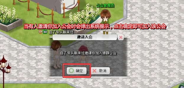 当有玩家邀请你加入公会时,点击确定即可