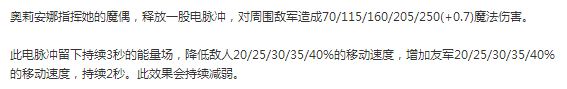 的被动效果。发条中单最经典的玩法是给1级给自己套护盾后与对方中单对A,附带的高伤害和护盾效果能非常好的压低对方血量。