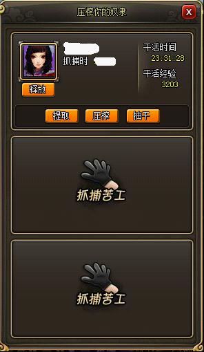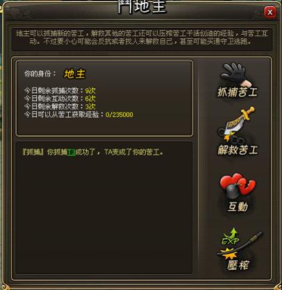 点击抓捕,即可开始抓捕战斗,战胜他之后即可将他抓作为自己的苦工
