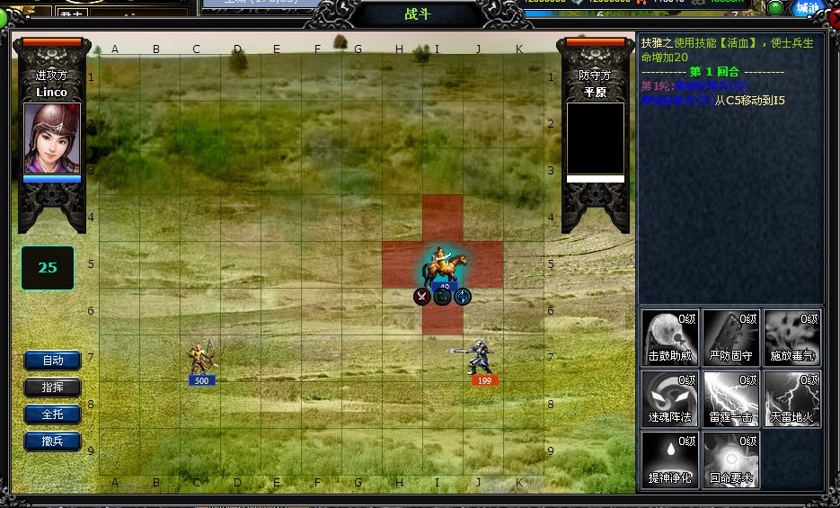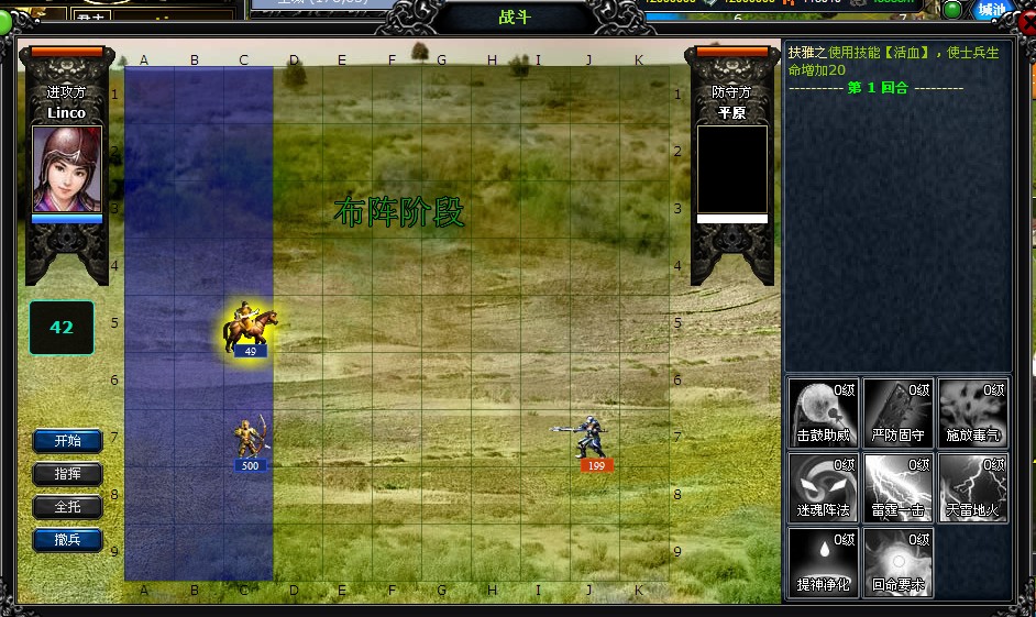 玩家可以选择**战斗,亲身参与到战斗中去。下面是战斗画面,战斗前可以布置自己的部队位置。
