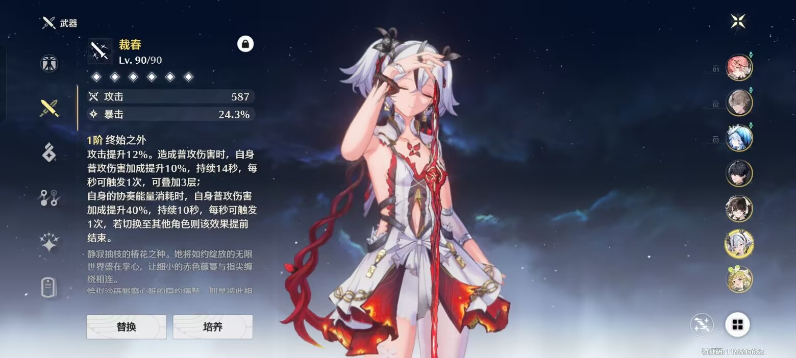 椿武器依旧优先考虑专武,无专武下位替代千古洑流。