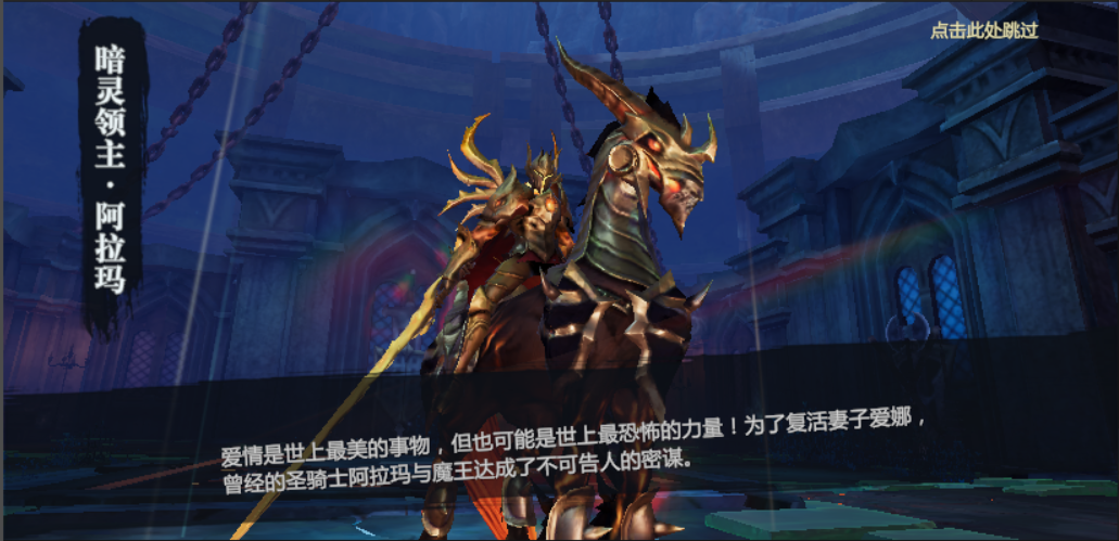 背景介绍:阿拉玛的妻子爱娜遭人陷害不幸离世,为了将其复活阿拉玛向魔王献出自己的灵魂。曾经繁华的卡利亚堡,如今已成为暗灵领主的堡垒。