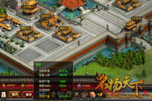 2、 粮草:建造、招募、出征、士兵的维持都需要粮草。