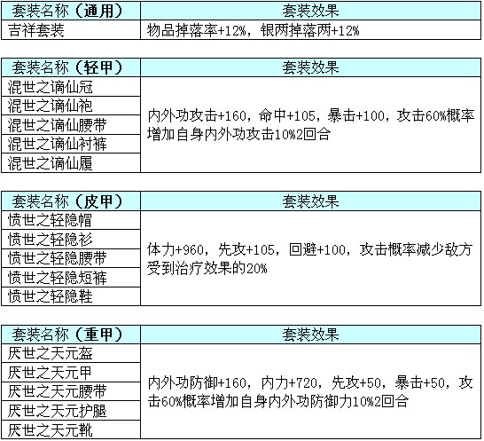 集齐全套套装即可获得强大的套装属性,相应等级段的副本都有几率获得以下套装哦!