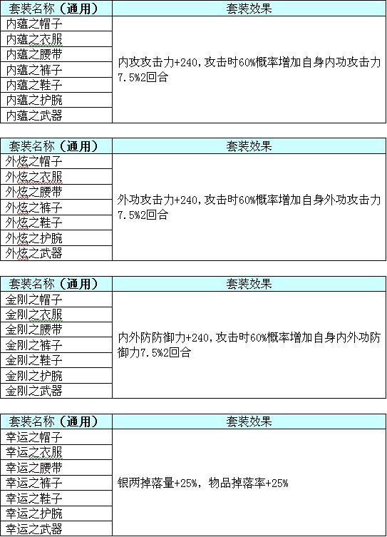80-90级通用套装解析 集齐全套套装即可获得强大的套装属性,以下套装可以在野外BOSS、万安塔,和相应等级段的副本有几率获得!