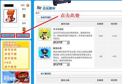 3、进入车库:当您成功登陆后,玩家论坛页面左上角的登陆框位置中将会显示出您的"论坛头像"、"手套等级"以及"驾照等级",另外还有两个蓝色的按钮,分别为"个人车库"和"更改设置"。点击"个人车库"将会弹开您的车库窗口,并进入车库的首页。点击"更改设置"将会进入车库窗口中的"管理车库"页面。